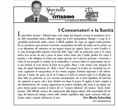 La rubrica sull'Azione, settimanale della diocesi di Vttorio Veneto, a firma dell'Avv. Nicola Todeschini